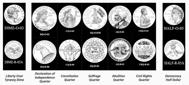 The final recommendations were for a dime that bears a “Liberty Over Tyranny” design; five quarters that would have the “Declaration of Independence,” “U.S. Constitution,” “Abolitionism,” “Suffrage” and “Civil Rights” as their respective designs; and a half-dollar that would bear a “Participatory Democracy” design.