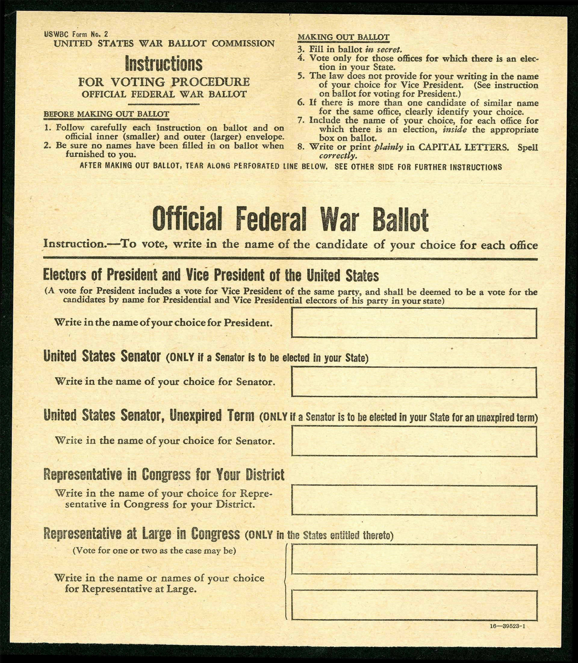 Absentee voting for soldiers from all states was codified in federal law in 1942. A 1944 amendment specified that ballots that were postmarked by Election Day and arrived within two weeks after Election Day could be counted.