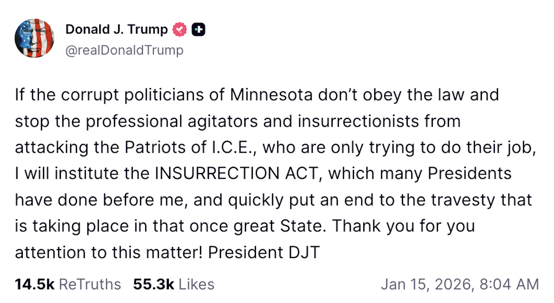 As protesters and federal law enforcement clashed in Minneapolis in the wake of a second shooting of a civilian on Jan. 14, 2026 by federal agents, President Donald Trump threatened to invoke the Insurrection Act to send troops to Minnesota in response to protests.